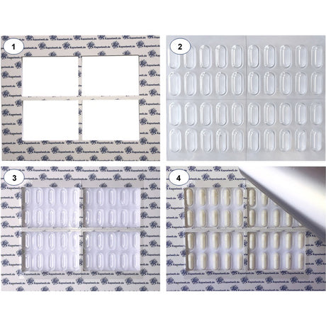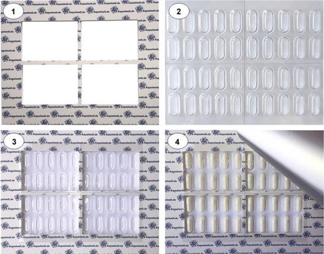 Mit unseren praktischen Blistergeräten können Sie Ihre Kapseln hygienisch, luftdicht und feuchtegesichert in einer Sichtverpackung selbst verblistern.