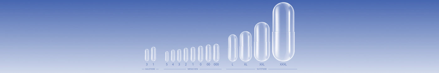 Größe der Kapseln: "00" (23,3 x 8,2 mm)Füllmenge (nach Dichte): 480 - 950 mg